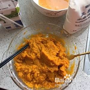将紫薯蒸熟然后同理压成泥加入适量牛奶搅拌