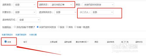 在上面点选全部未按约定时间发货的订单即可。