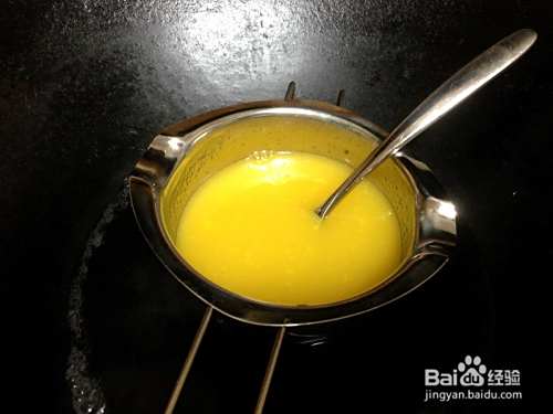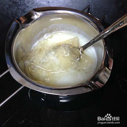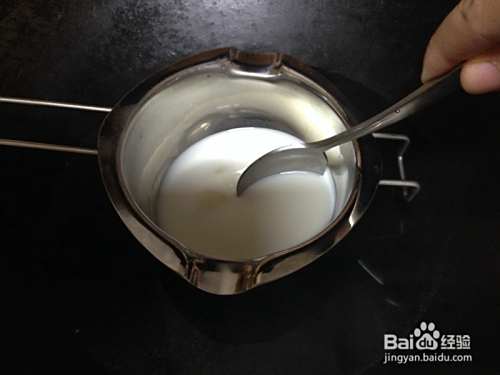 60g牛奶加砂糖隔水小火加热 搅拌至融化
