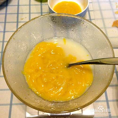 加入250g芒果泥,搅拌均匀 剩余50g备用
