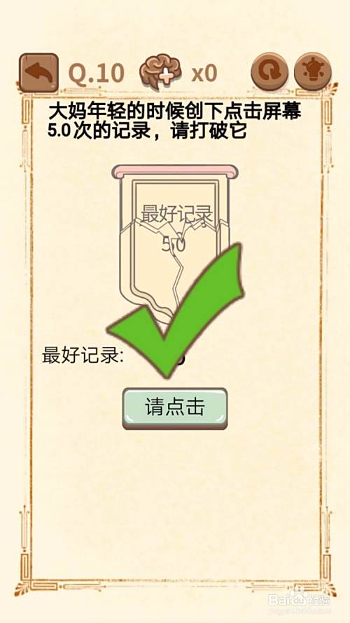 第10关,将题目中“:”的一个点拖放到题目中的5和0中间,另一个点拖放到到记录牌上的5和0中间,最后点击5下就可以了,如图所示 。