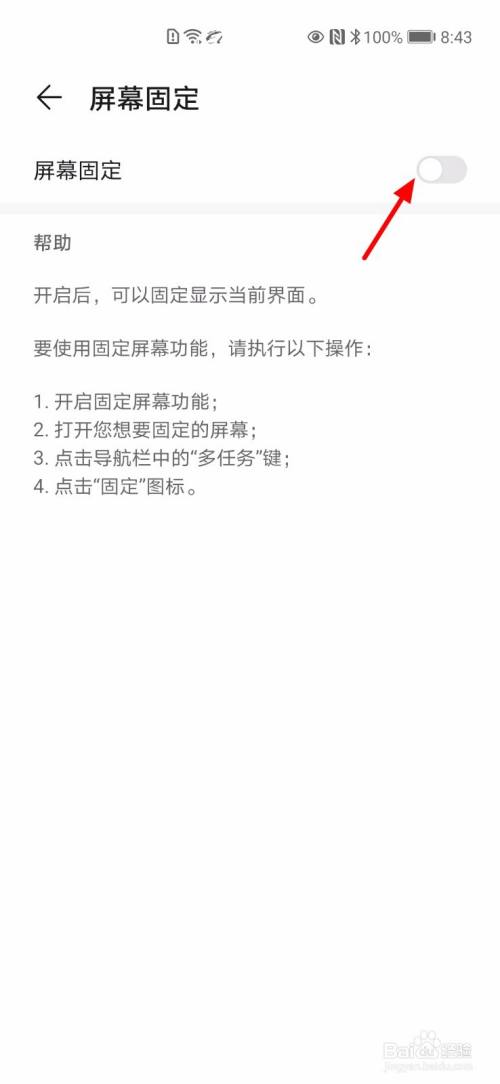 【2】点击 屏幕固定,开启 屏幕固定,开启成功。