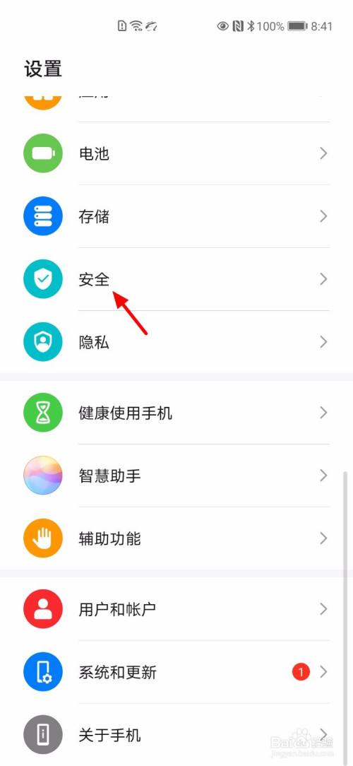 在设置页面,点击 安全;