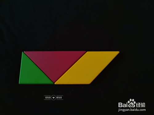 拿出一个粉色小三角形放在黄色平行四边形的旁边,如下图所示。