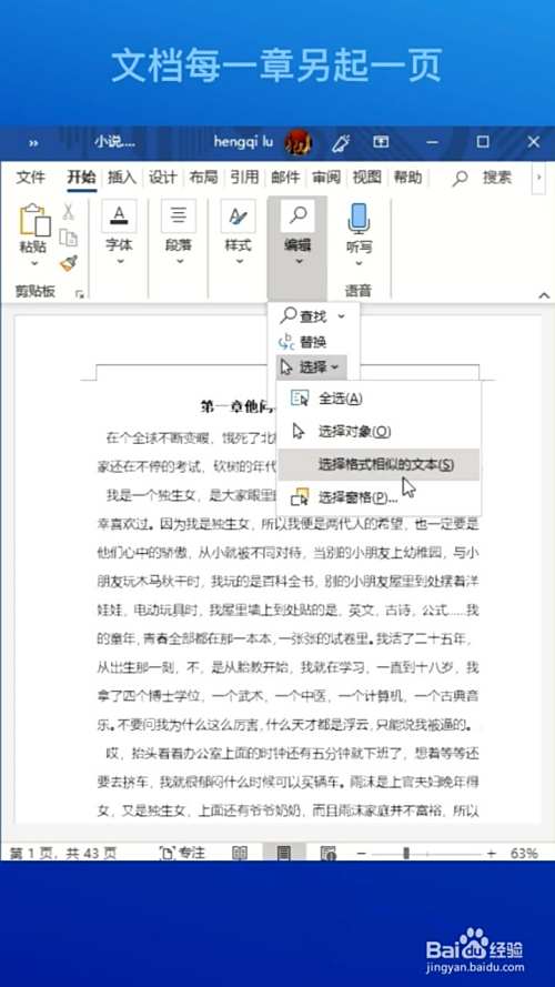 点击编辑的小三角形,然后再点击选择选项下的选择格式相似的文本。