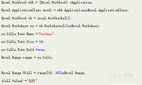 好了,现在你需要获得你的Excel对象来操作Excel,此时需要使用Office的.Net库来完成。代码如下: