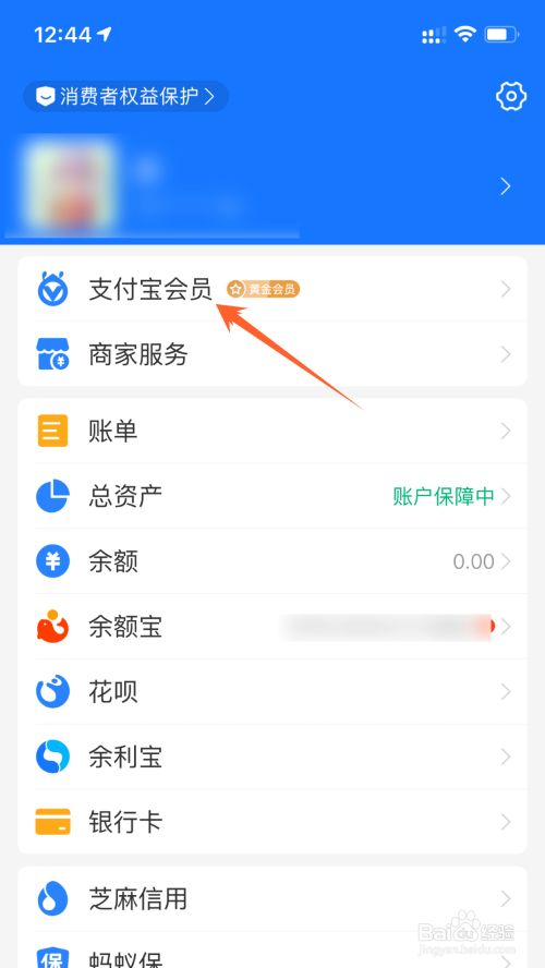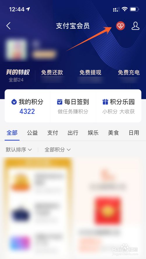 进入支付宝会员后,点击右上角我的家图标,如下图箭头指示所示。