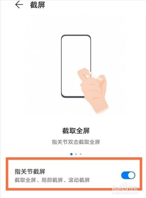 进入设置—辅助功能—快捷启动及手势—截屏—开启指关节截屏,在手机屏幕上使用手指关节处双击屏幕即可截屏。
