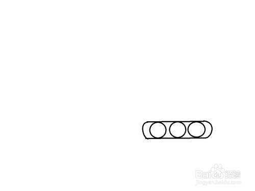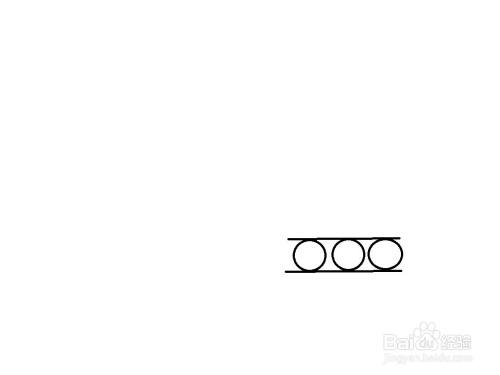 先画出3个圆形,在上下各画出一条横线,如图所示。