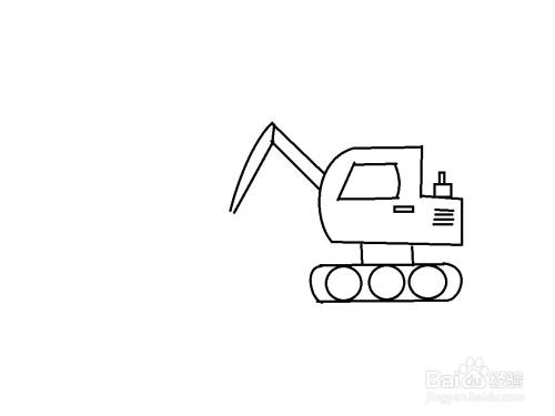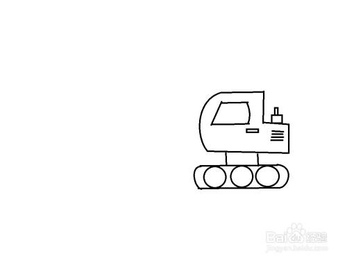 2 画出挖土机的身体轮廓,把烟囱和窗户画出来。