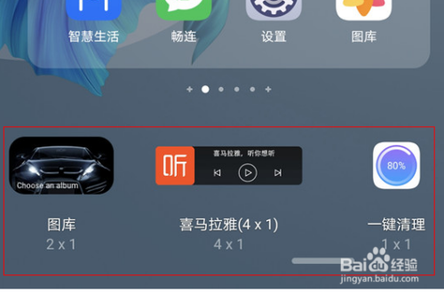 在华为手机桌面上,双指捏合进入编辑状态。