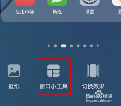 进入桌面编辑状态,点击窗口小工具按钮进入。