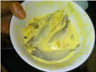 将鱼放在鸡蛋碗中,充分的挂上鸡蛋浆。
