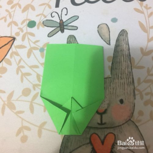 然后把底边往中间折,如下图所示。