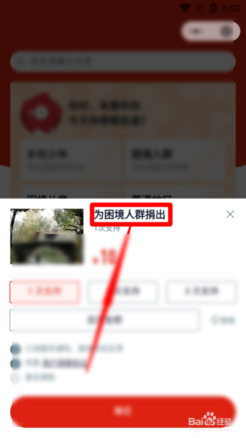 5在 右上 方向,找到 为困境人群捐出 。由于色彩或者亮度的原因,可能不容易找不到,请多一些耐心。祝你好运。END