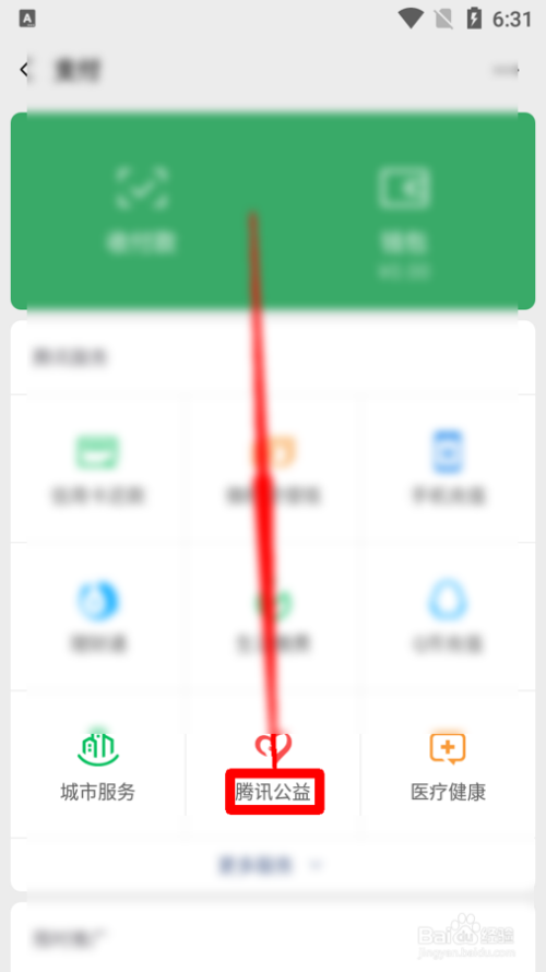 3在 右下 方向,找到 腾讯公益 。