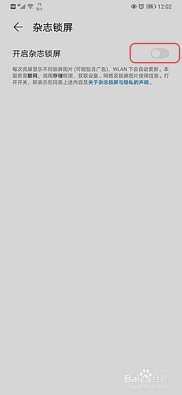 进入杂志锁屏页面后,点击“开启杂志锁屏”右侧的开关,继续下一步。