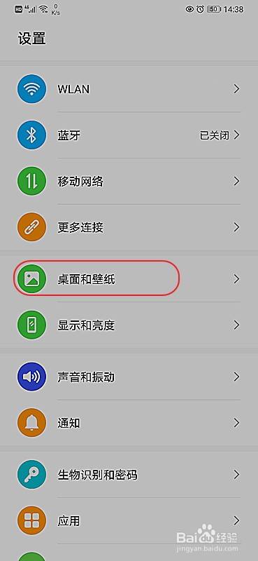 进入手机设置页面后,点击“桌面和壁纸”选项,然后进行下一步。