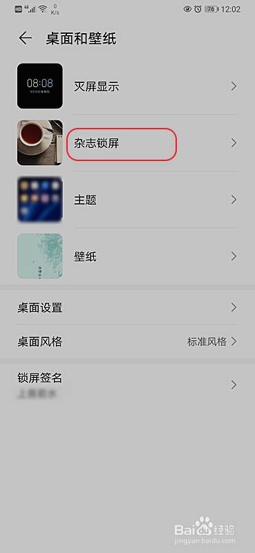 进入桌面和壁纸页面后,点击“杂志锁屏”一栏,继续下一步。