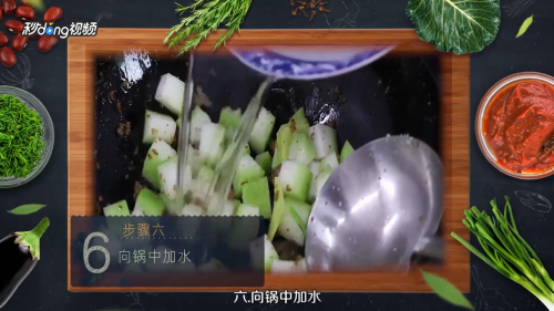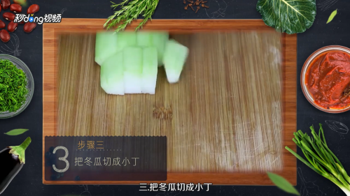将冬瓜削皮、去瓤、切丁。