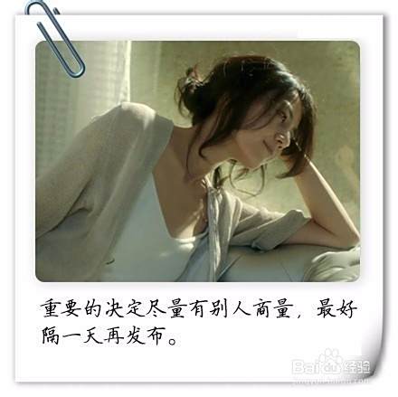 重要的决定尽量有别人商量,最好隔一天再发布。