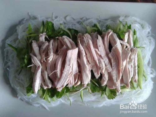 煮熟的肉拿出来撕成条,晾凉。