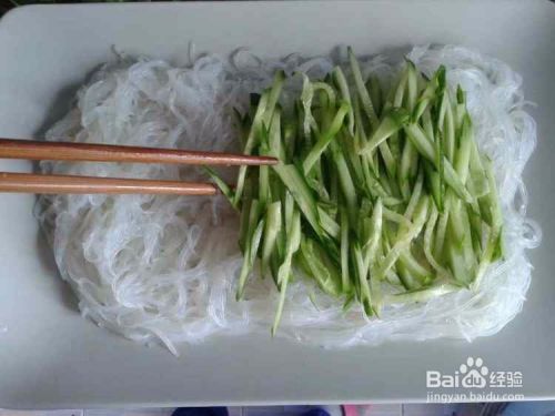 粉丝铺子盘子上,上面再铺黄瓜。
