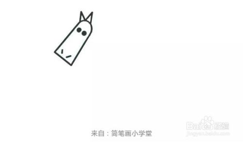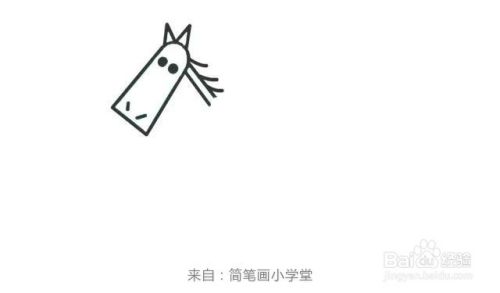 首先画出木马的马脸,长长的,再画出马的耳朵、眼睛、鼻子。