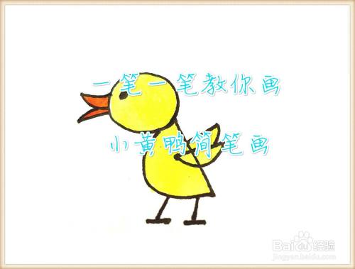 最后把小黄鸭涂成黄颜色就可以了,如图所示,小黄鸭简笔画就完成啦!