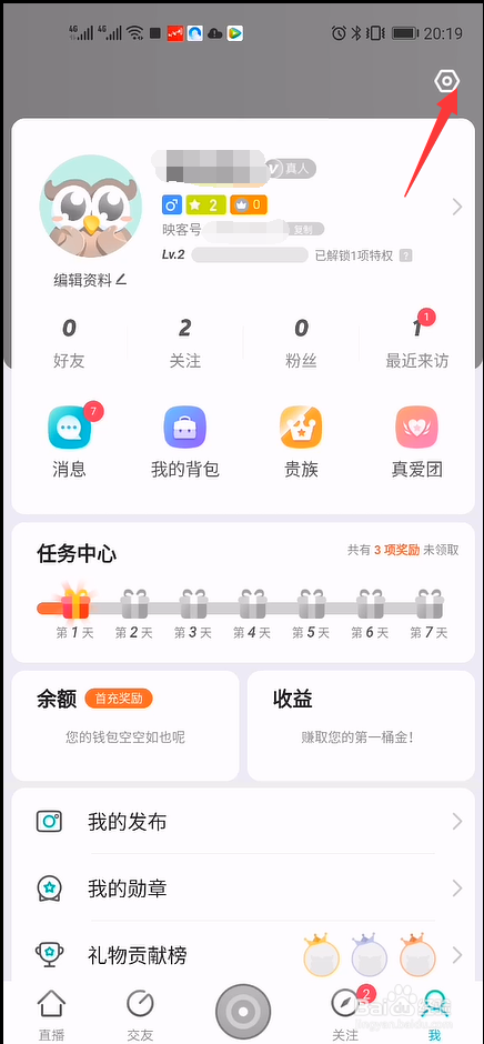 进入到我的个人页面,点击顶端右侧的“设置”图标。