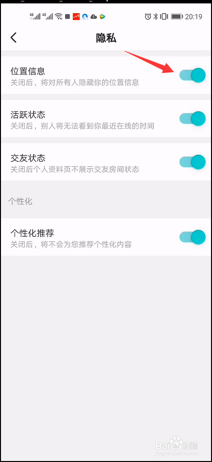 所以,我们只需关闭该开关按钮,即可不显示我们的最近在线时间。