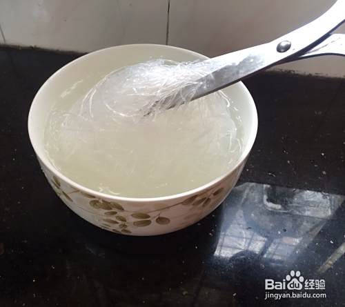 用开水烫粉丝用不了多久。去锅里把粉丝泡在冷水里