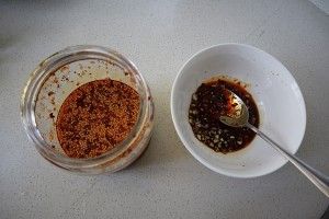 用小锅加水把之前炒好的番茄碎放入锅中煮沸,用小碗放调料,爱吃辣椒酱可以准备啦