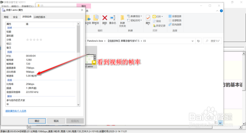 找到文件后,我们右击打开属性,在详细信息一栏目中,我们可以看到帧率是我们设置的帧率。