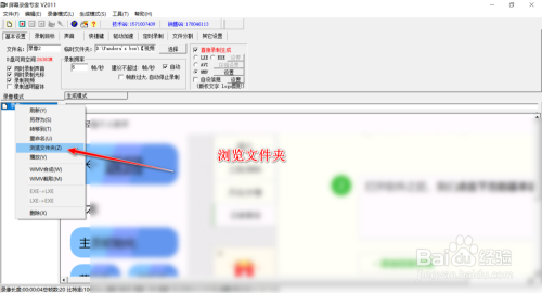 录制完成之后,我们可以点击文件,右击找到浏览文件夹。就能够找到文件存放目录。