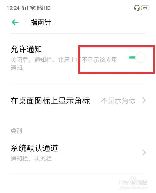 在界面的上方有“允许通知”选项。此时,横杠的颜色为灰色,我们只需要点击一下让它变成绿色就可以了。