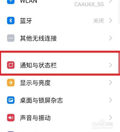 接下来在显示的界面中找到“通知与状态栏”选项,点击打开。