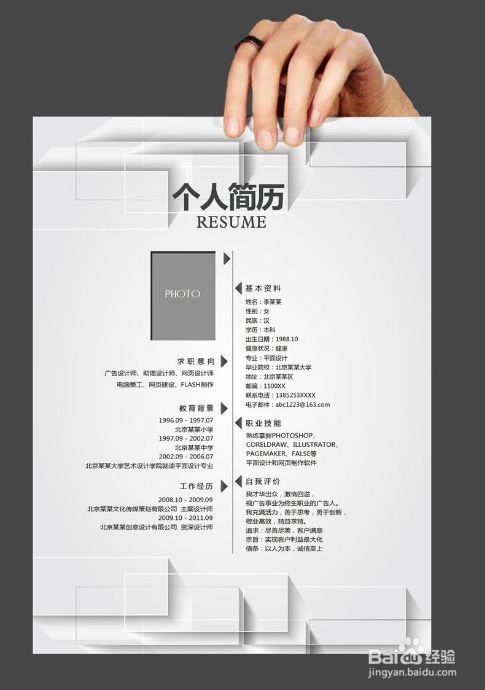 简历照一定要大方得体,正式,要能够清晰看到求职者的五官和轮廓,避免使用艺术照或生活照。以半年内的证件照为最佳,女生可以化淡妆。