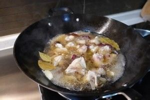 加入大半锅开水随后加入猪蹄,改大火