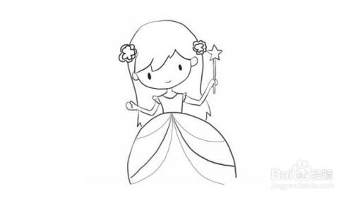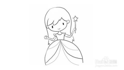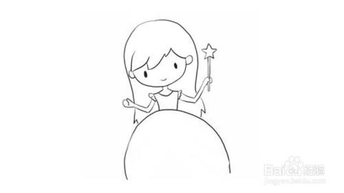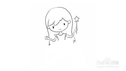 第三步在身体两边画上手臂,手里可以拿一个可爱的仙女棒。
