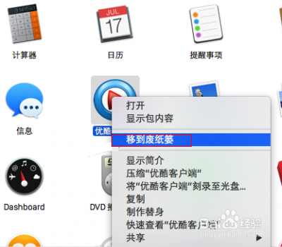 在应用程序页面,鼠标右键要卸载应用选择移动到废纸篓即可。