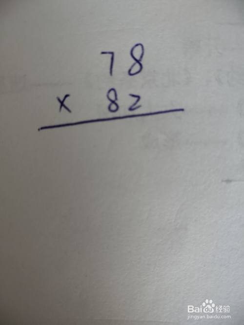 先写被乘数78,再写乘数82,最后写乘号和横线