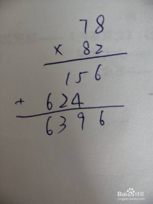 【5】计算完成后,整理结果,写出计算横式78×82=6396