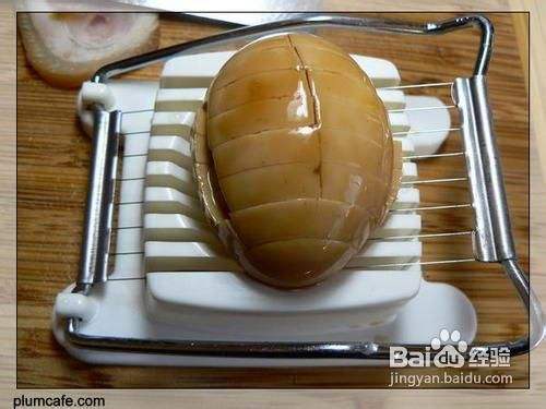卤好的鸡蛋,直接吃就可以了,不过,如果家里来客人了,想摆个冷的拼盘的话,可以切成片摆。有个很好用的切鸡蛋的小工具,可能大家都知道吧,不过我还是再罗嗦一下下了。