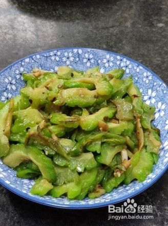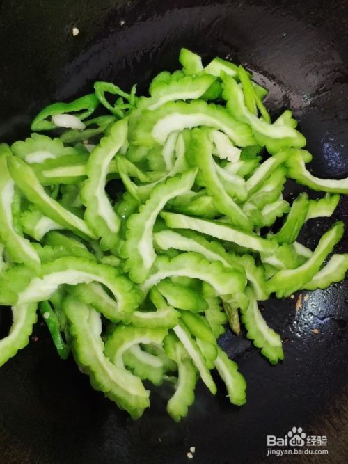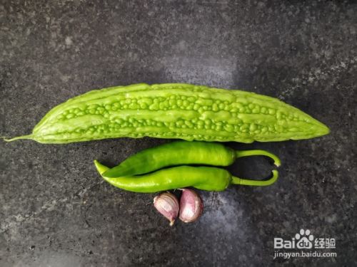苦瓜洗净,去籽,切片。青椒和大蒜切碎。