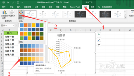 在【设计】选项卡中【图表样式上栏】中选择一个合适的图表模式