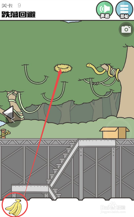 之后点击道具栏中的道具香蕉,然后将其移至鸟窝内,香蕉会吸引来周围的猴子。