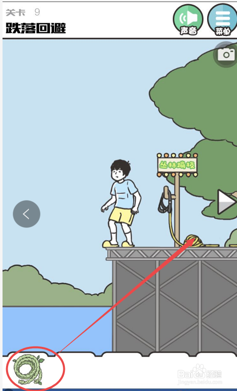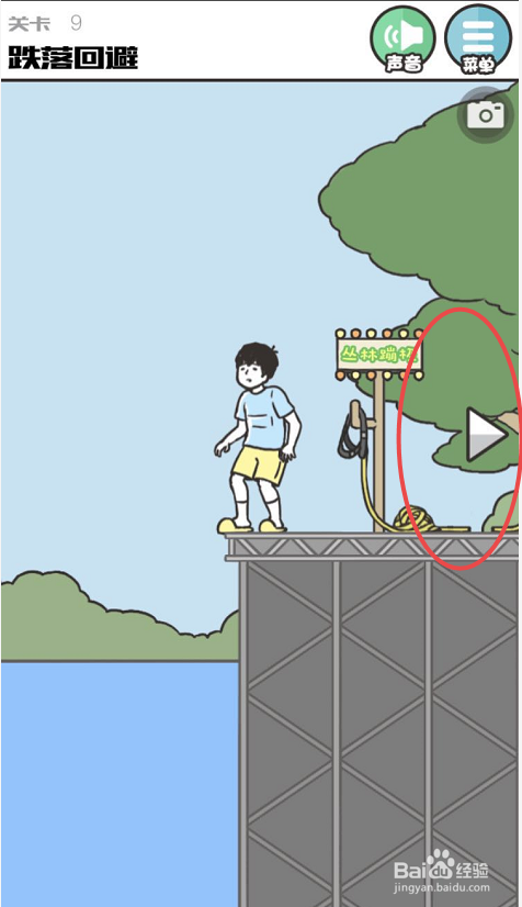 点击神回避1手游,开始第九关的挑战。神回避1手游第九关的挑战主题是跌落挑战,并且给出了香蕉的提示。