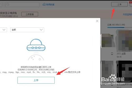 在视频的右上角,点击上传按钮,在弹出的对框中,在点击上传按钮!