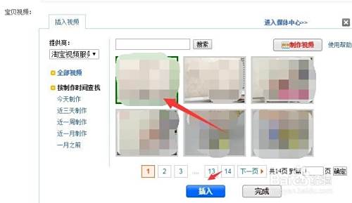 点击宝贝视频下旁边 的“选择视频”,在弹出的插入视频框中,找到刚刚上传的视频,点击插入按钮!